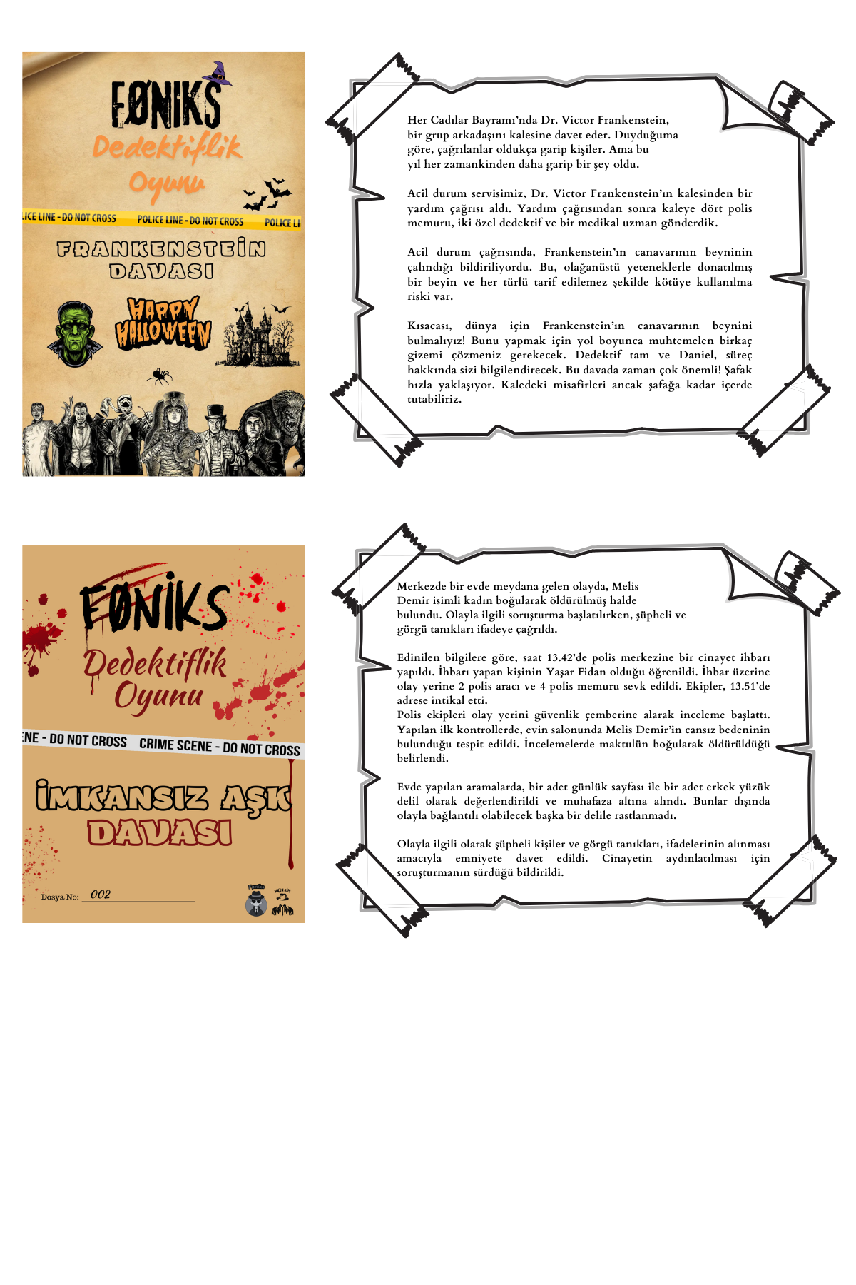 🎩 “Suçlu Kim?” ile zekânı konuştur, ipuçlarını birleştir, gerçeği ortaya çıkar! Bu özel set, 8 ayrı dedektiflik oyunu içeren keyifli ve sürükleyici bir macera paketidir. Her biri farklı bir olay örgüsü sunar ve oyuncuları gerçek bir dedektif gibi düşünmeye davet eder.
